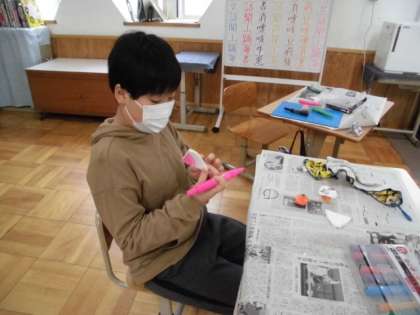 給食週間に向けて、感謝の気持ちを込めてミニミニ給食サンプルを紙粘土で作成しました。パンやおだんごなど、自分の好きな給食メニューのサンプルができましたね。