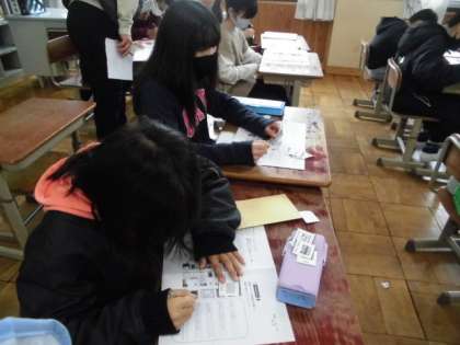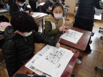 英語で道案内をしました。「まっすぐ進む」「右に曲がる」「左に曲がる」を上手に使って、道案内ができましたね。