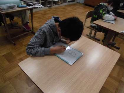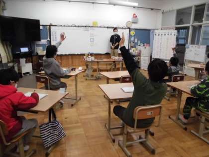 文節の頭文字をヒントに友達がどんな文章を書いたのか考えました。『き』『チ』『た』は何だろう?「きのう チキンを 食べた?」「きのう チーズを たべた?」いろんな答えがでましたが、正解は「きのう チョコレートを たべた」でした。1つの文字からたくさんの言葉を連想できましたね。