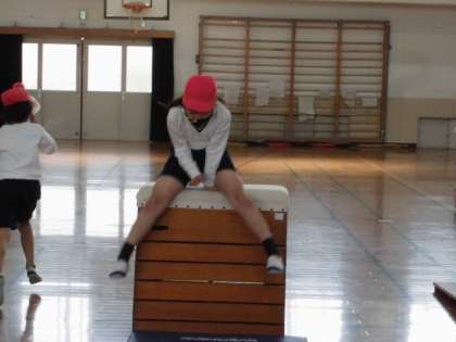 跳び箱をしました。8段の跳び箱や、台上前転に挑戦している子もいました。