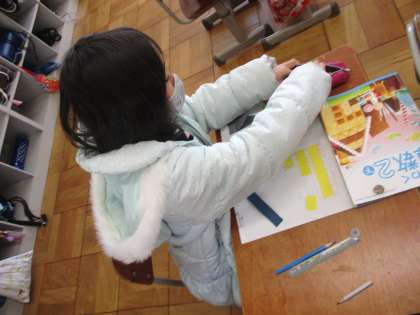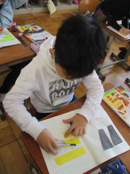 半分の半分はどうなるかな?紙テープを使いながら学習しました。