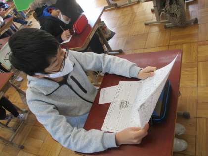 給食調理員さんの仕事の様子を動画で見ることで,普段どのように給食を作ってくれているのかを知ることができました。6年間の感謝の気持ちを込めて,お手紙を書きました。みんなの感謝の気持ちが伝わるといいですね。