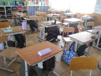 地震の際の安全確保行動「まず低く,頭を守り,動かない」を意識するように取り組みました。また,東日本大震災についても知ることで,防災の重要性を再認識しました。