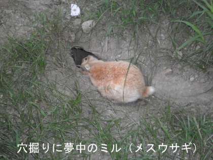 ミルは,屋外飼育場で穴掘りに夢中です。もう1メートルほどのトンネルを作っています。