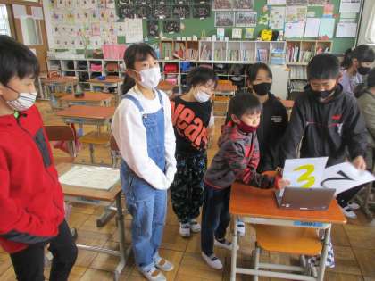 まずは,5年生が中心となって作成したオンライン3ヒントゲーム『この先生だーれだ?』『ここどーこだ?』を行いました。5年生の進行もスムーズで,どの教室も楽しく盛り上がっていました。