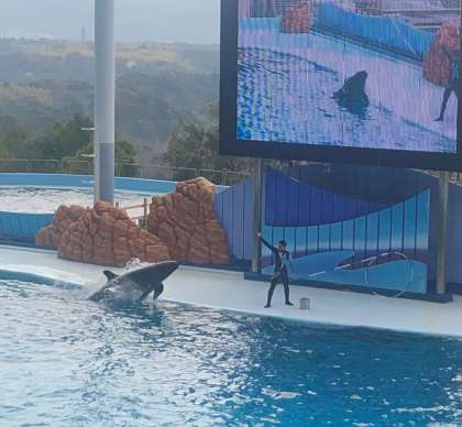 動物と触れ合ったり,イルカショーを見たりしました。