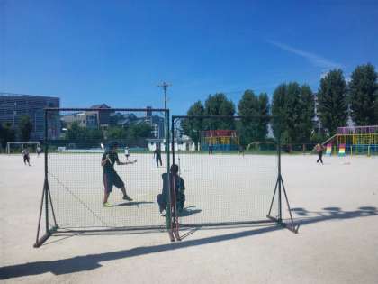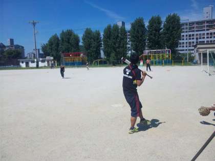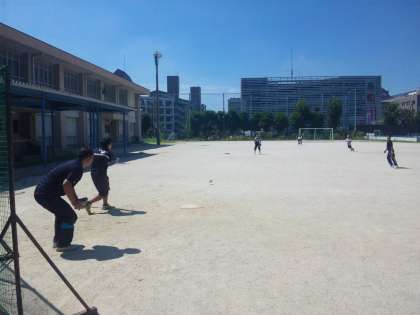 炎天下の中,一生懸命に練習する子どもたちを見ていて,刺激されたのか,松田先生が10時ごろより練習に参加しました。