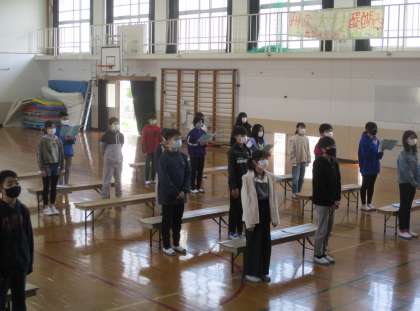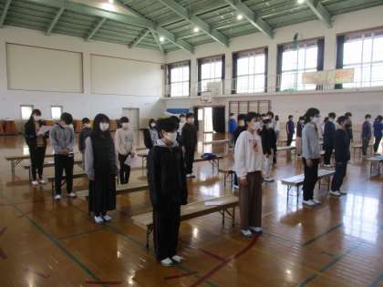 卒業式の練習をしました。今年は門出の言葉や歌もいつもと異なる形で行いますが,それぞれの想いが伝わるよう工夫をしています。すてきな卒業式になるといいですね。