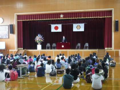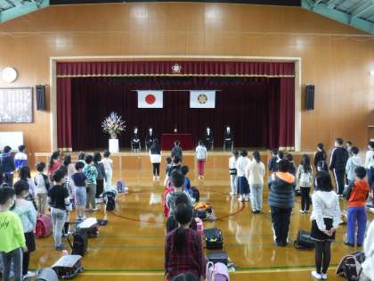 着任式に続き,始業式がおこなわれました。1つ学年が上がり,希望に胸を膨らませる子どもたちです。
