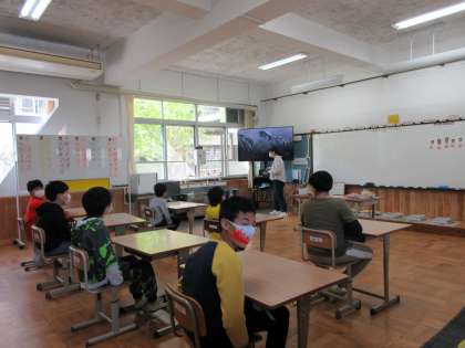 3くみの子どもたちは,担任の先生の自己紹介を一生懸命に聴いていました。明日からも,どんな学習をするのかわくわくしますね。