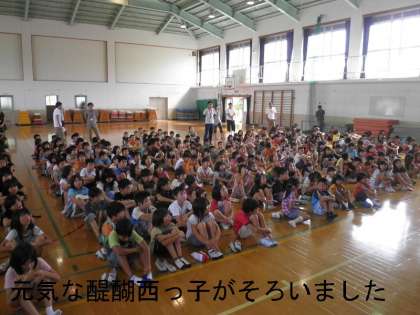 夏休み明けの初日,子どもたちが体育館に集まり「朝会」がありました。
