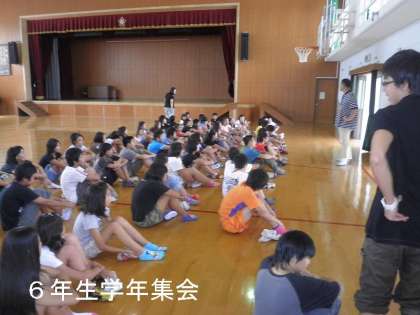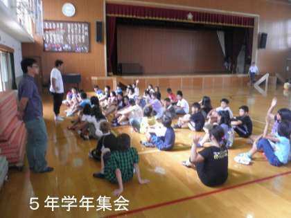 朝会後,体育館で5年,6年それぞれ学年集会が持たれました。