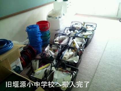 朝早くから,現地(花背山の家,旧堰源小中学校)に行き,明日からの長期宿泊学習の準備物を搬入しました。
