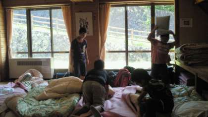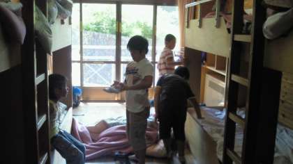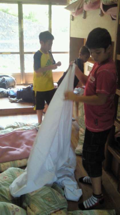 子どもたちは,入所式が終わり,それぞれ今日の宿泊場所で就寝準備をしています。