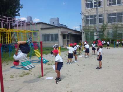 4時間目に,運動場で『てつぼう』の学習をしました。