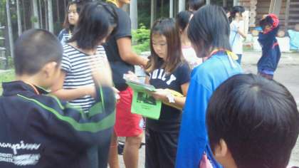 いろいろなところに隠されている動物のカードをグループで協力して見つけ出すゲームです。