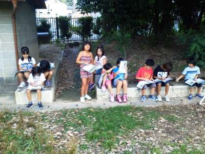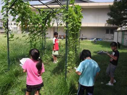 子どもたちは,すくすく育っているツルレイシとヘチマを見て,とても喜んでいました。