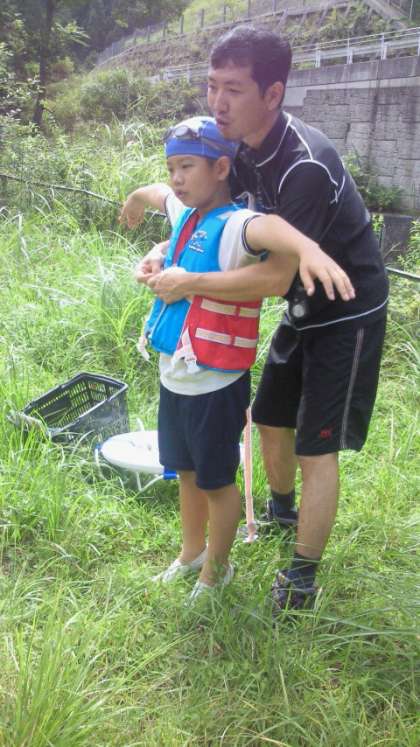 水着の上に体操服を着て,ライフジャケットを着用し,靴下を履いて活動用靴を履いて川遊びを行います。