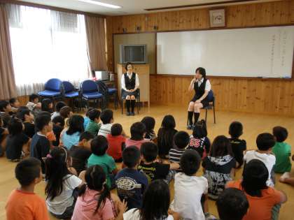 「ストーリーテリング」とは,本のない語り聞かせです。世界や日本の物語や昔話などを,子どもたちの前で,さも本があるように語って聞かせていただきます。