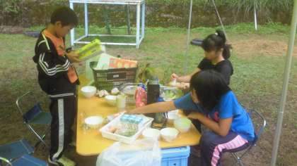 子どもたちは,朝食作りに悪戦苦闘しながら,完成し,食べ始めるたグループが出てきました。