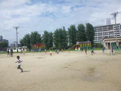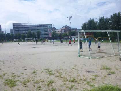 中間休みの運動場で