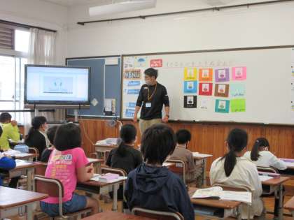 5年生は“What 〜 do you like?"の表現を用いて,友だち同士で好きなものを尋ね合いました。