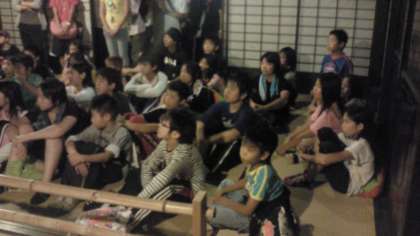 北山民家に集まり,そこで怖い話を聞いた後,グループに分かれて,夜道を歩きます。ところどころに,仕掛けがあり,コースを一周します。