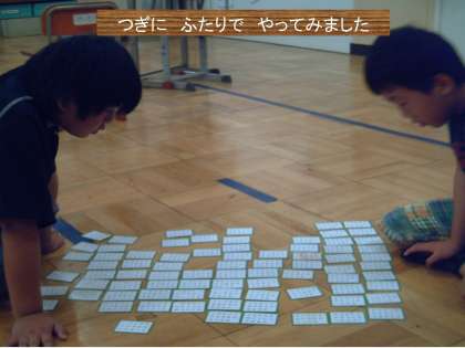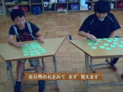 自分用の札には,片面には上の句,もう片面に下の句が書いてあります。