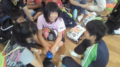 朝食終了後,水筒を受け取り,今日一日の活動計画を確認するために,みんなが集まりました。
