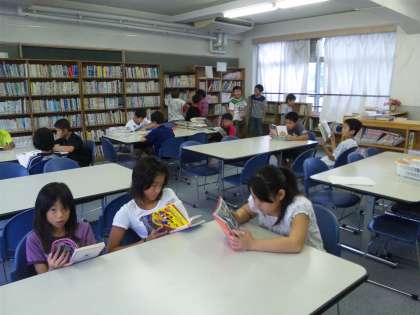 雨が降ると図書館では,多くの子どもたちが本を読みにきます。