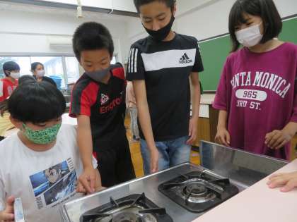 6年生は,調理実習に向けての準備を行いました。緊急事態宣言が発出中なので,今はまだ調理実習を行うことができませんが,「いろどり野菜炒め」の手順や家庭科室でガスコンロの使い方,調理器具がどこにあるのかを確認しました。