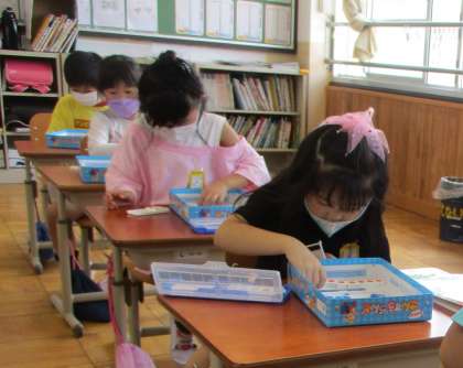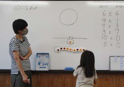 数ブロックを使って,おはじき入れをしました。