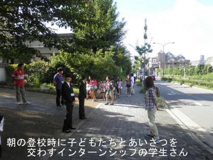 明るく元気な学生さんばかりですので,子どもたちも喜んで話しかけています。