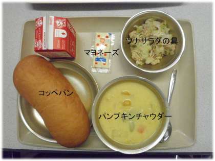 「コッペパン」「ツナサンドの具」「パンプキンチャウダー」「マヨネーズ」