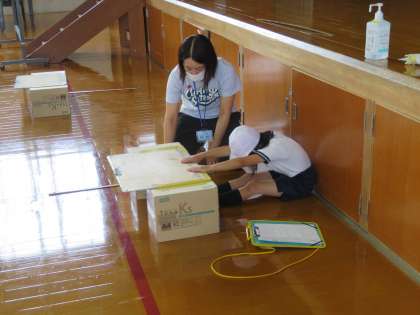 今日は,新体力テストの「反復横とび」「立ち幅とび」「長座体前屈」を行いました。1・2年生は,「なかよしグループ」でいっしょに回りました。今年初めて体力テストを行う1年生にとって,2年生はよいお手本となっていたようです。