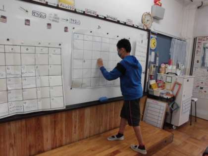 6月は何の行事があるのかな?自分たちで予定を確認しながら、みんなでカレンダーを作っています。