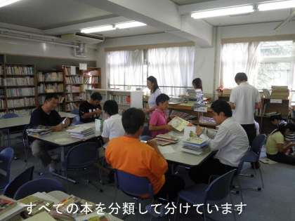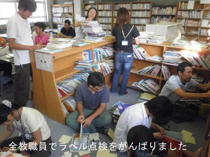 昨日の夕方から全教職員で,図書室の本のラベルの点検や張り替え作業をしました。