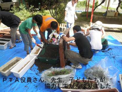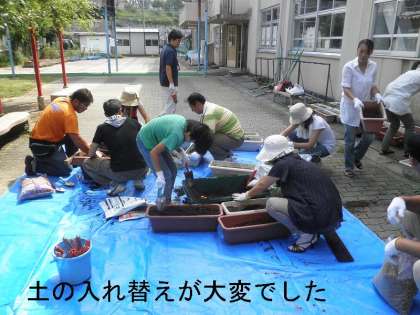 PTA環境厚生部の役員さんに来ていただき,約150の花の植えかえ作業をしていただきました。