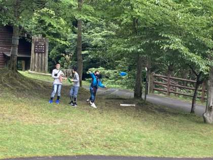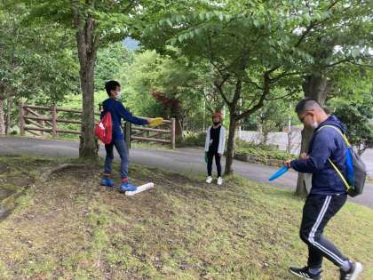6年生は「フライングディスクゴルフ」にチャレンジです。みんなホールインワンを目指してはりきっています!
