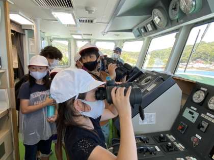 海洋高校では,船にも乗せてもらいました。見たことのない機械もたくさんあったようです。