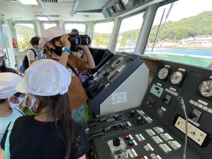 双眼鏡をのぞいたり,船から景色を眺めたりしました。