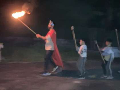火の神の登場の後,点火し,レクリエーション係を中心に大いに盛り上がりました。