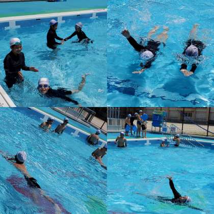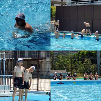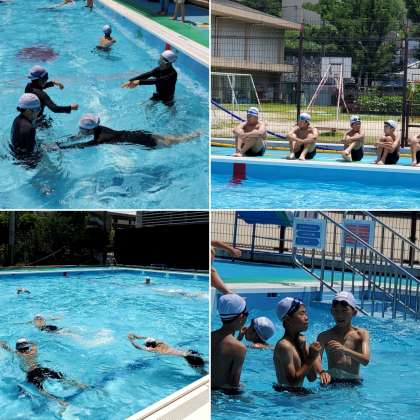 スイムフォームを見ながら,互いに改善してく姿はさすが6年生!