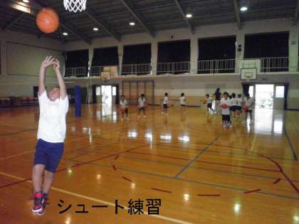 金曜日の放課後は部活動です。体育館では,バスケットボールとバレーボールが練習をしています。