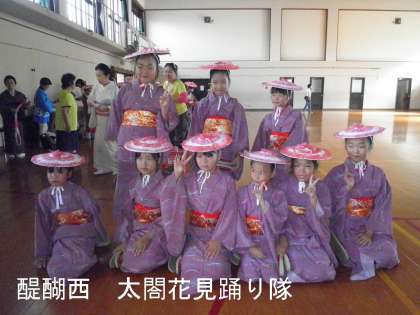 10時にスタートしましたが,その前に醍醐小学校から折戸公園まで,太閤花見行列があり,本校の子どもたちも花見踊り隊として参加しました。
