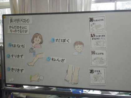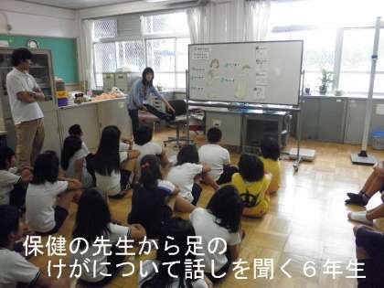 身体計測の前に,保健室の先生から,学校で起こる「けが」について予防策などの話を聞きました。