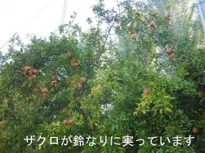 学校のグリーンベルト(外環状線側)に2本の「ざくろ」の木がありますが,今年は,実がたくさんつきました。