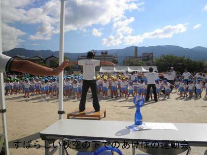 さわやかな秋空の下,あけぼの保育園の運動会が池田小学校運動場で行われました。