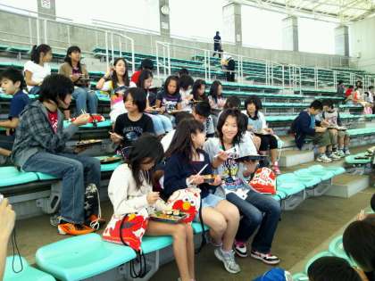 お弁当を食べるのは,イルカショーを見ていたスタジアムです。
