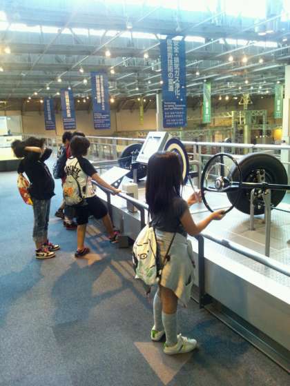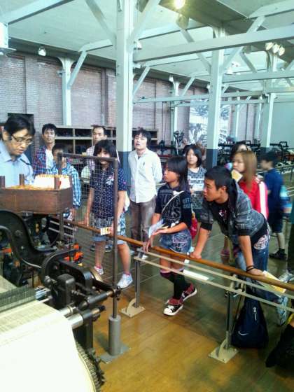 ここは,近代日本の発展を支えた基幹産業の一つである繊維機械と,現代を開拓し続ける自動車の技術の変遷を通して,日本の産業技術史について次代を担う人たちへ系統的に紹介するための施設です。ものつくりの歴史や技術を約1時間かけてグループで見学しました。